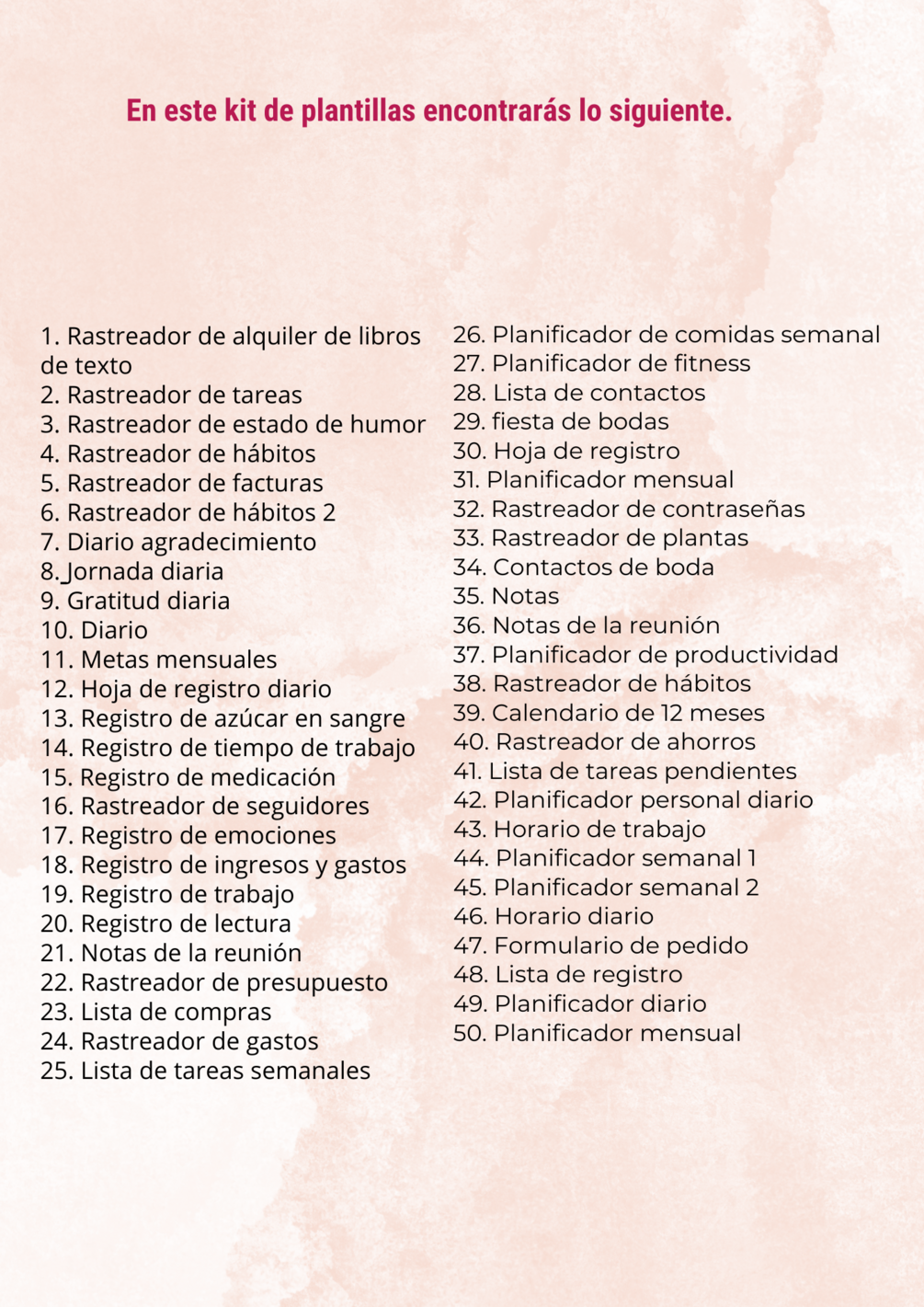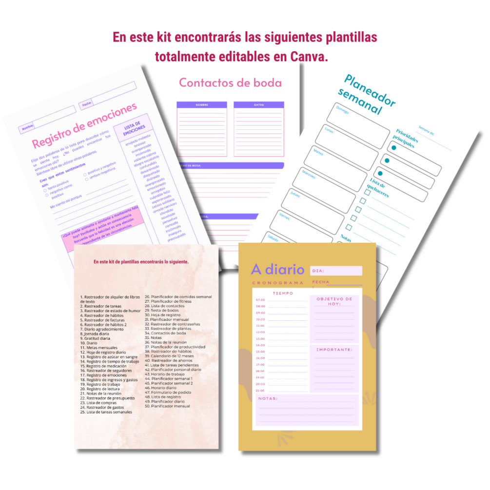 50 plantillas editables de Canva, que incluyen lo siguiente: